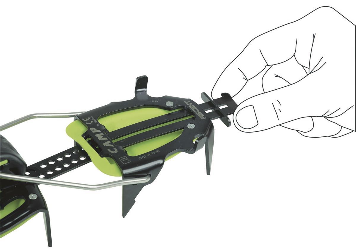 Elastyczny łącznik znacząco podnosi komfort chodzenia zwłaszcza w butach o dosyć miękkiej podeszwie. Asymetryczny kształt w pełni koresponduje z profilem nowoczesnych butów górskich. Aktywne antiboty skutecznie zapobiegają zbieraniu się śniegu pod spodem raków. Przy każdym kroku podkładka lekko ugina się utrudniając jego przyklejanie. Do zestawu dołączony jest pokrowiec na raki.