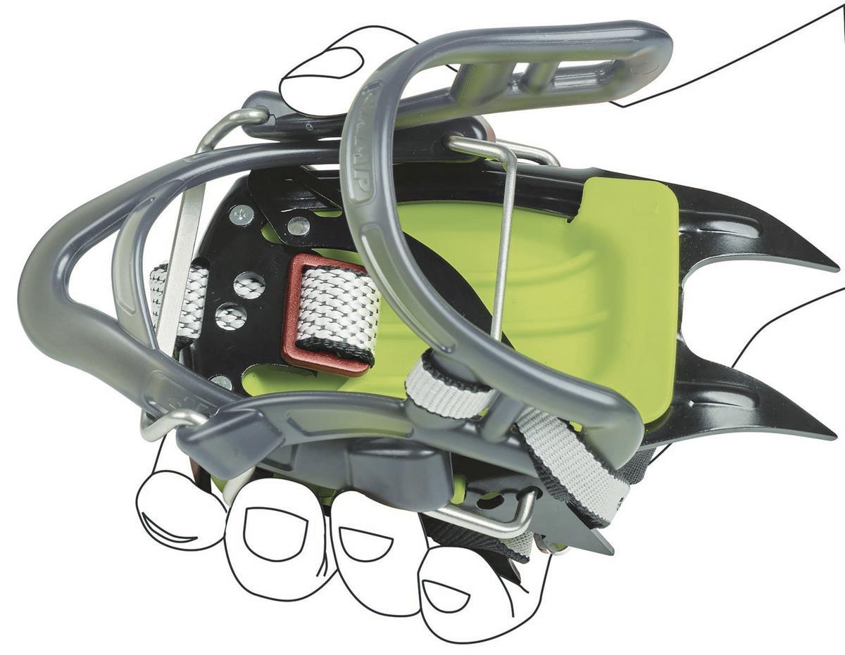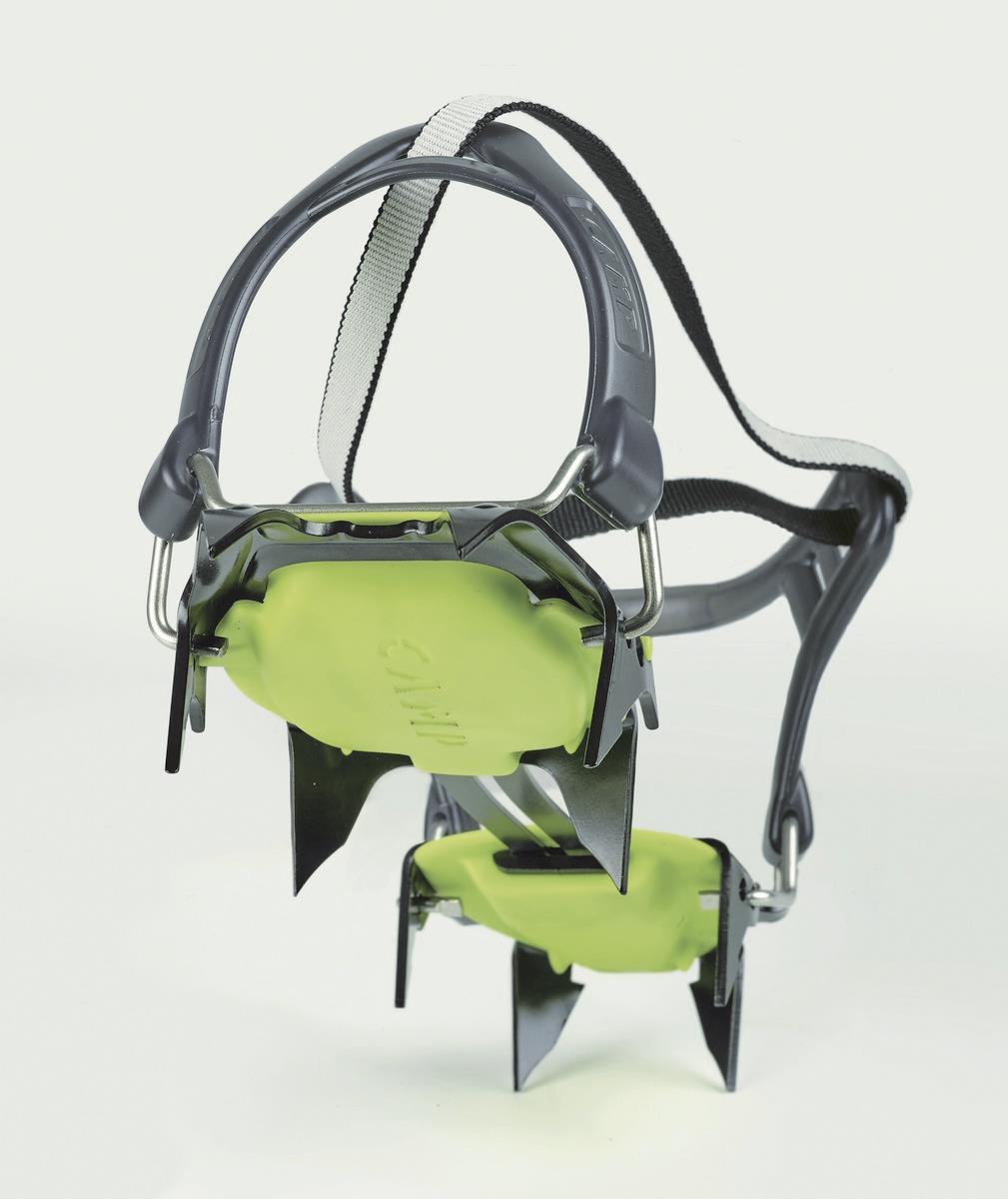 Elastyczny łącznik znacząco podnosi komfort chodzenia zwłaszcza w butach o dosyć miękkiej podeszwie. Asymetryczny kształt w pełni koresponduje z profilem nowoczesnych butów górskich. Aktywne antiboty skutecznie zapobiegają zbieraniu się śniegu pod spodem raków. Przy każdym kroku podkładka lekko ugina się utrudniając jego przyklejanie. Do zestawu dołączony jest pokrowiec na raki.