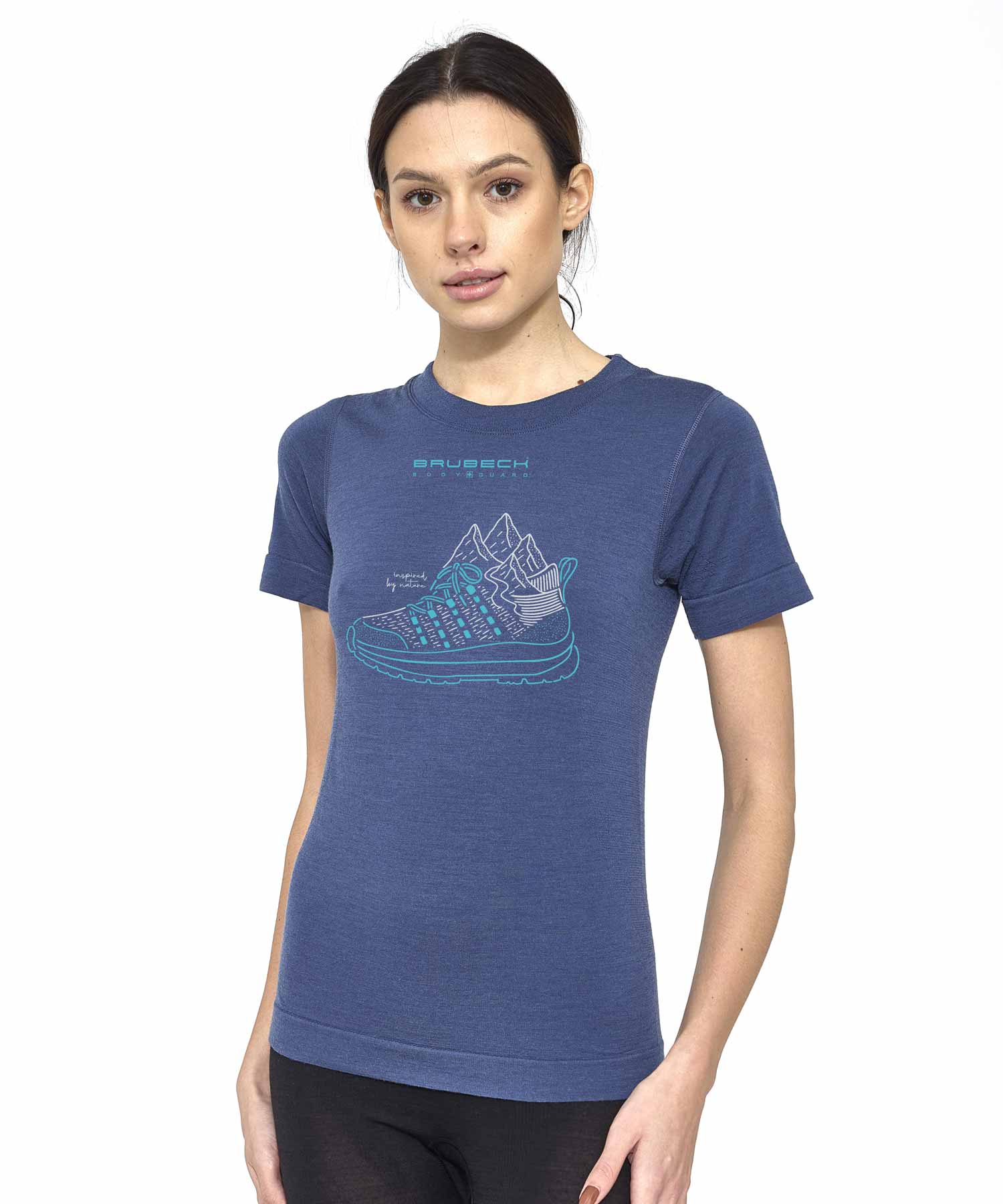 Koszulka damska z krótkim rękawem Brubeck OUTDOOR WOOL PRO niebieska