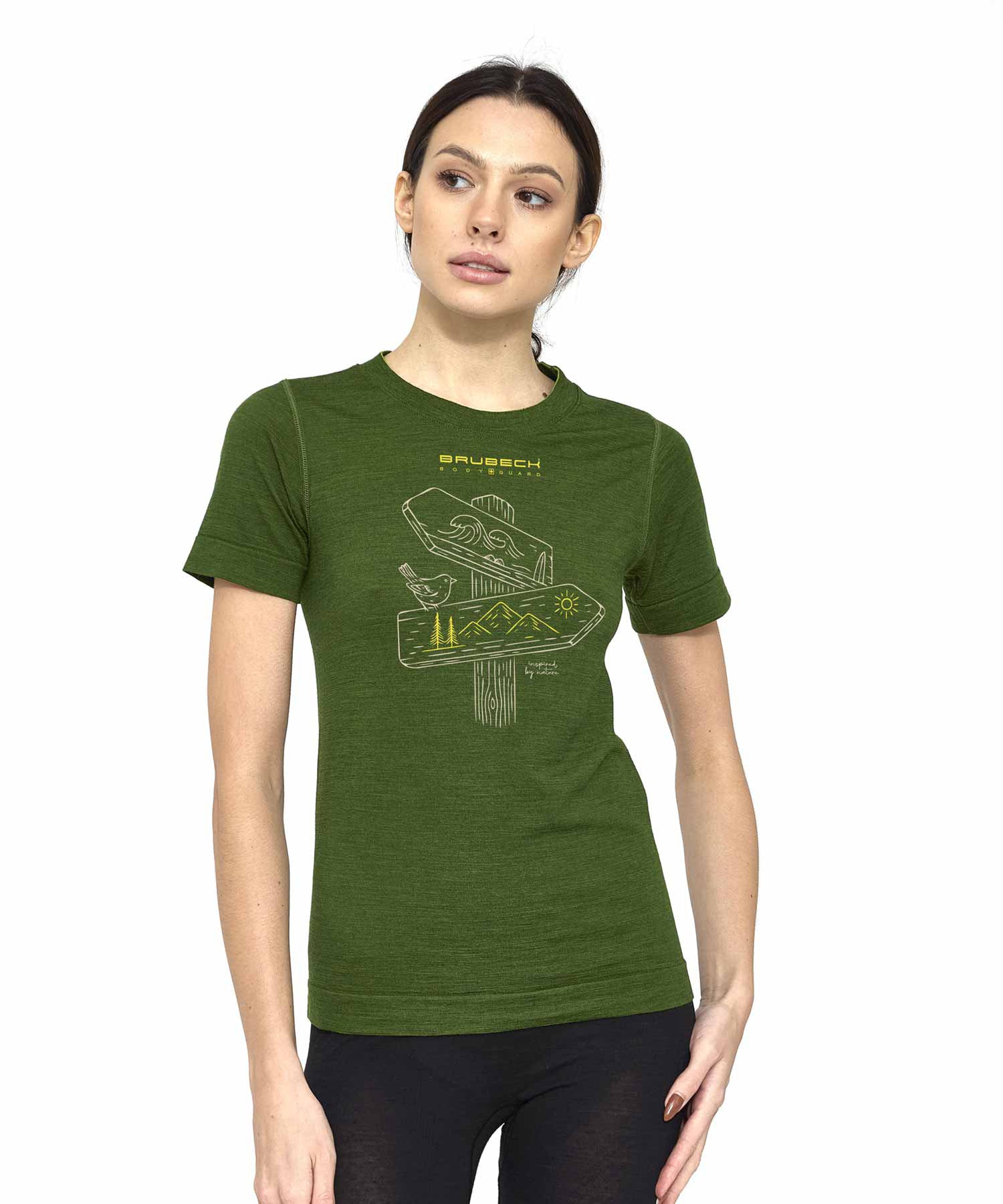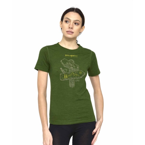 Koszulka damska z krótkim rękawem Brubeck OUTDOOR WOOL PRO zielony