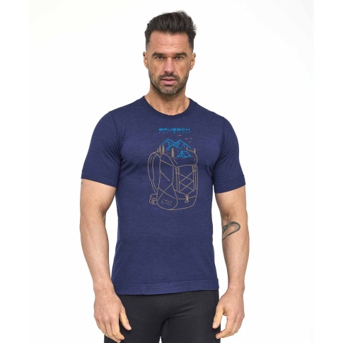 Koszulka męska z krótkim rękawem OUTDOOR WOOL PRO - granatowy