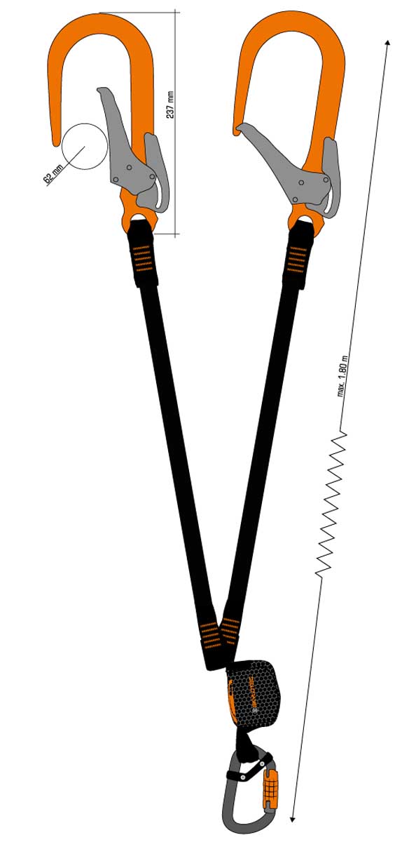 Model o dwóch symetrycznych ramionach, połączonych z absorberem. Ramiona są przeszyte w taki sposób, że niezależnie od siebie łączą się z taśmą pochłaniającą energię. Lonża występuje w jednej wersji, o długości 1.8 m.