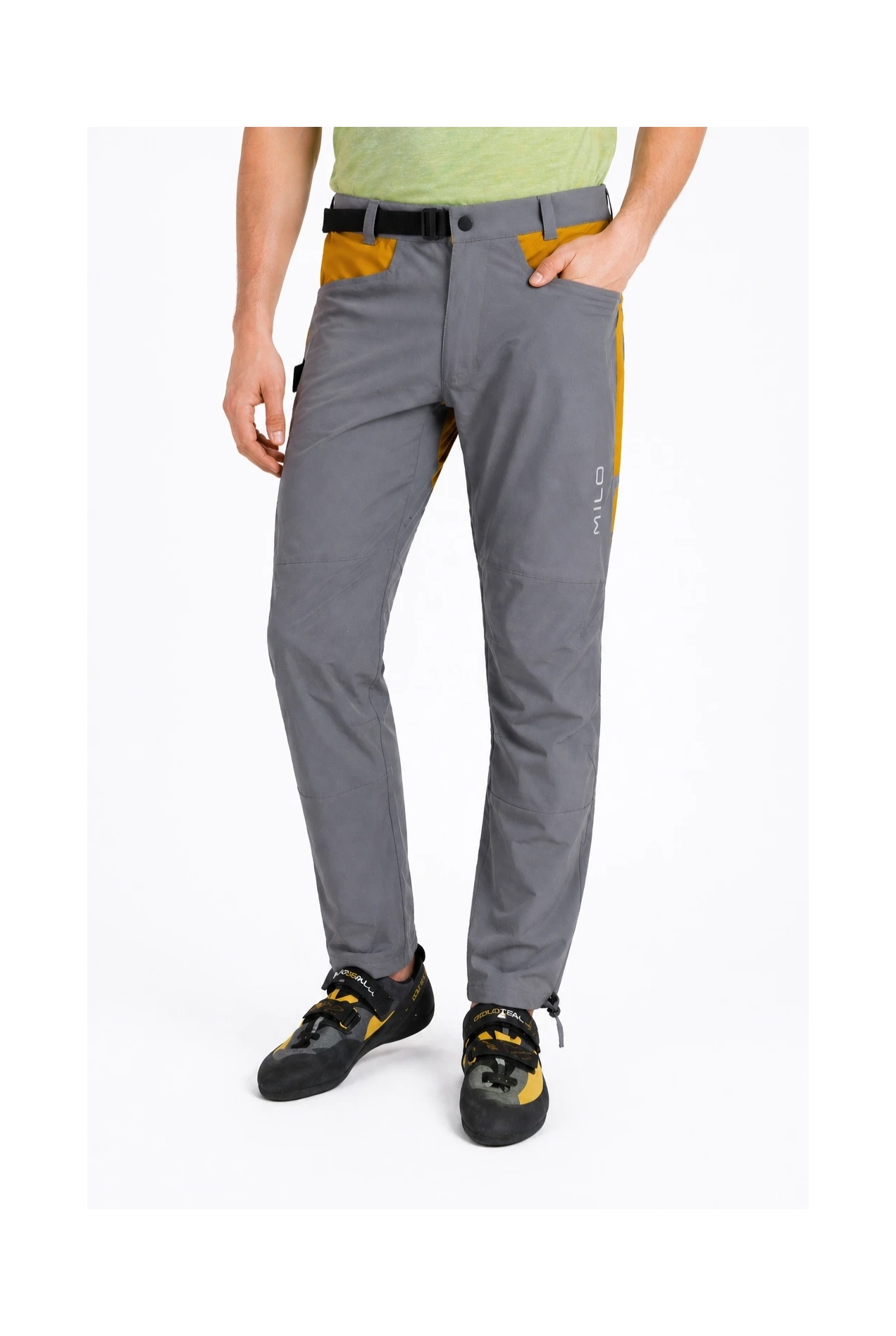 Hybrydowa mieszanka wiskozy bambusowej, bawełny organicznej i poliestru zapewnia dobrą oddychalność, szybkie odprowadzanie wilgoci oraz wysoką odporność na intensywne użytkowanie. Konstrukcja 4-way stretch sprawia, że materiał rozciąga się w czterech kierunkach, zapewniając pełną swobodę ruchu podczas wspinania.