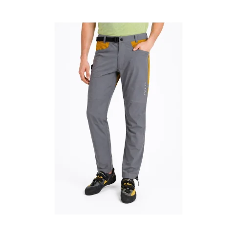Spodnie wyposażono w płaski system regulacji pasa, który dobrze współpracuje z uprzężą wspinaczkową. Profilowane kolana oraz wentylowany klin w kroku zwiększają mobilność i komfort podczas ruchu. Model posiada cztery funkcjonalne kieszenie oraz ergonomiczny uchwyt na szczoteczkę do czyszczenia chwytów.