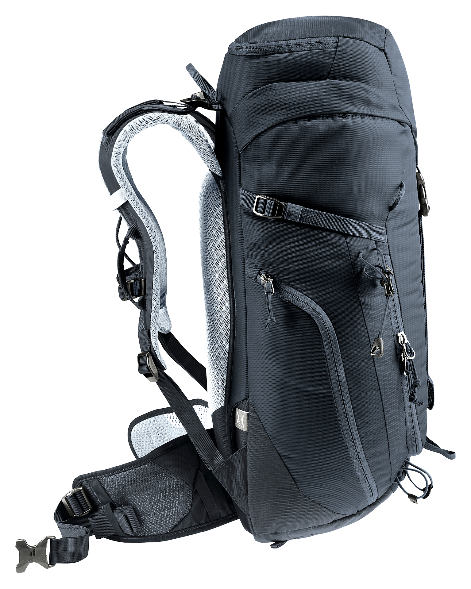 Zmniejszona powierzchnia styku i duże kanały wentylacyjne systemu nośnego Deuter Airstripes w połączeniu z perforowanymi paskami naramiennymi i płetwami biodrowymi zapewniają maksymalny przepływ powietrza i równomierne rozłożenie ciężaru – zapewniając idealne i bezpieczne dopasowanie w każdym terenie. Płaska klapa zapewnia swobodę ruchów głowy, nawet w kasku. Pętle na paskach naramiennych pozwalają na wygodne zamocowanie karabinków do zestawu via ferrata. A dzięki dużemu zamkowi błyskawicznemu z przodu i bocznym kieszeniom, sprzęt jest zawsze łatwo dostępny.