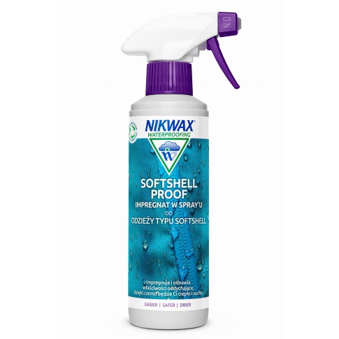 Tkaniny softshell łączą pożądane właściwości tradycyjnej odzieży i polarów wodoodpornych, aby poprawiać komfort użytkownika, jednocześnie zapewniając ochronę w większości warunków pogodowych. Softshells jest oddychający i rozciągliwy, a przy tym jest bardzo hydrofobowy i chroni przed wiatrem. Ubrania te dopasowują się do ciała osoby je noszącej, pozwalają wilgoci wydostawać się na zewnątrz, a jednocześnie nie przemakają i chronią przed zimnym wiatrem. Softshells zapewnia wszechstronną warstwę zewnętrzną, która poradzi sobie z większością warunków pogodowych. Aby zachowa hydrofobowość i właściwości oddychające, należy dopilnować, by zachowana została trwała powłoka wodoodporna (DWR). Nikwax SoftShell Proof™ został specjalnie zaprojektowana tak, by zachowywać maksymalną wydajność tkanin softshell.