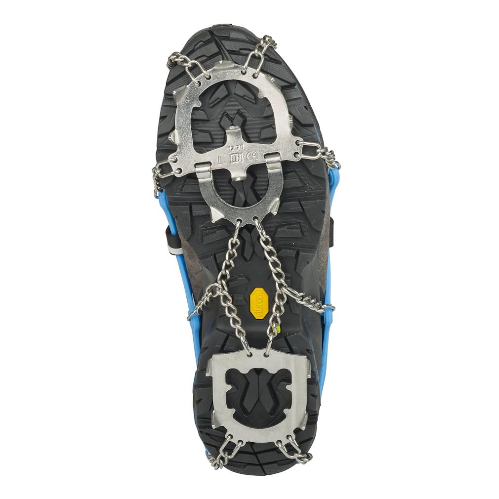 Raczki ICE MASTER EVO posiadają 13 zębów wykonanych ze stali nierdzewnej doskonale sprawdzających się na oblodzonych powierzchniach. Stworzone zostały jako rozwinięcie popularnego modelu Ice Master z myślą o bardziej wymagających użytkownikach. Mające 15mm zęby oraz łańcuszki ze stali nierdzewnej są wysoce wytrzymałe gwarantując trwałość użytkowania na śniegu i lodzie.