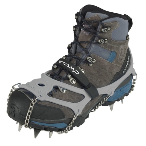 Szybkość i łatwość zakładania oraz ściągania raczków zapewnia gumowe mocowanie dokładnie obejmujące but. Dodatkowy pasek na rzep stabilizuje pozycję i zapobiega zsuwaniu się raczków podczas marszu. Raczki dostępne są w czerech rozmiarach.