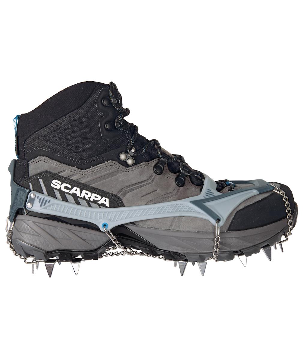 Ice Master Pro to najbardziej dopracowane raczki w ofercie CAMP-a. Producent połączył nowy, dwumateriałowy system mocowania z bardziej sztywną konstrukcją kolców, minimalizując ilość metalu tam, gdzie jest zbędny. Efekt? Niska waga, stabilne osadzenie na bucie i przyczepność, która naprawdę robi różnicę na oblodzonych podejściach.