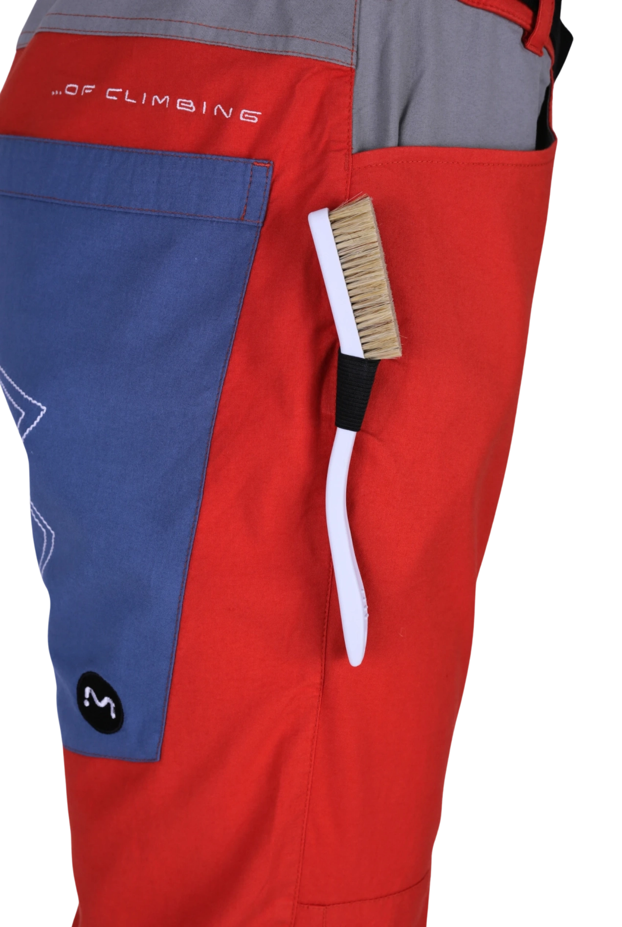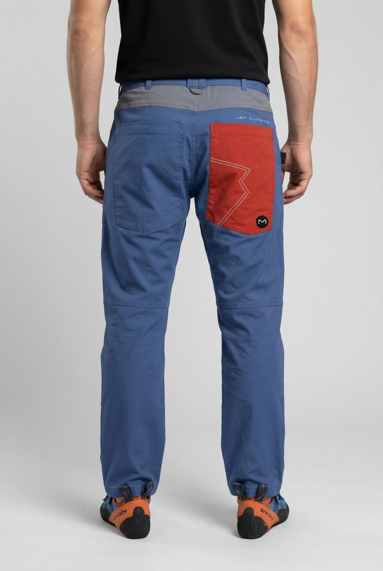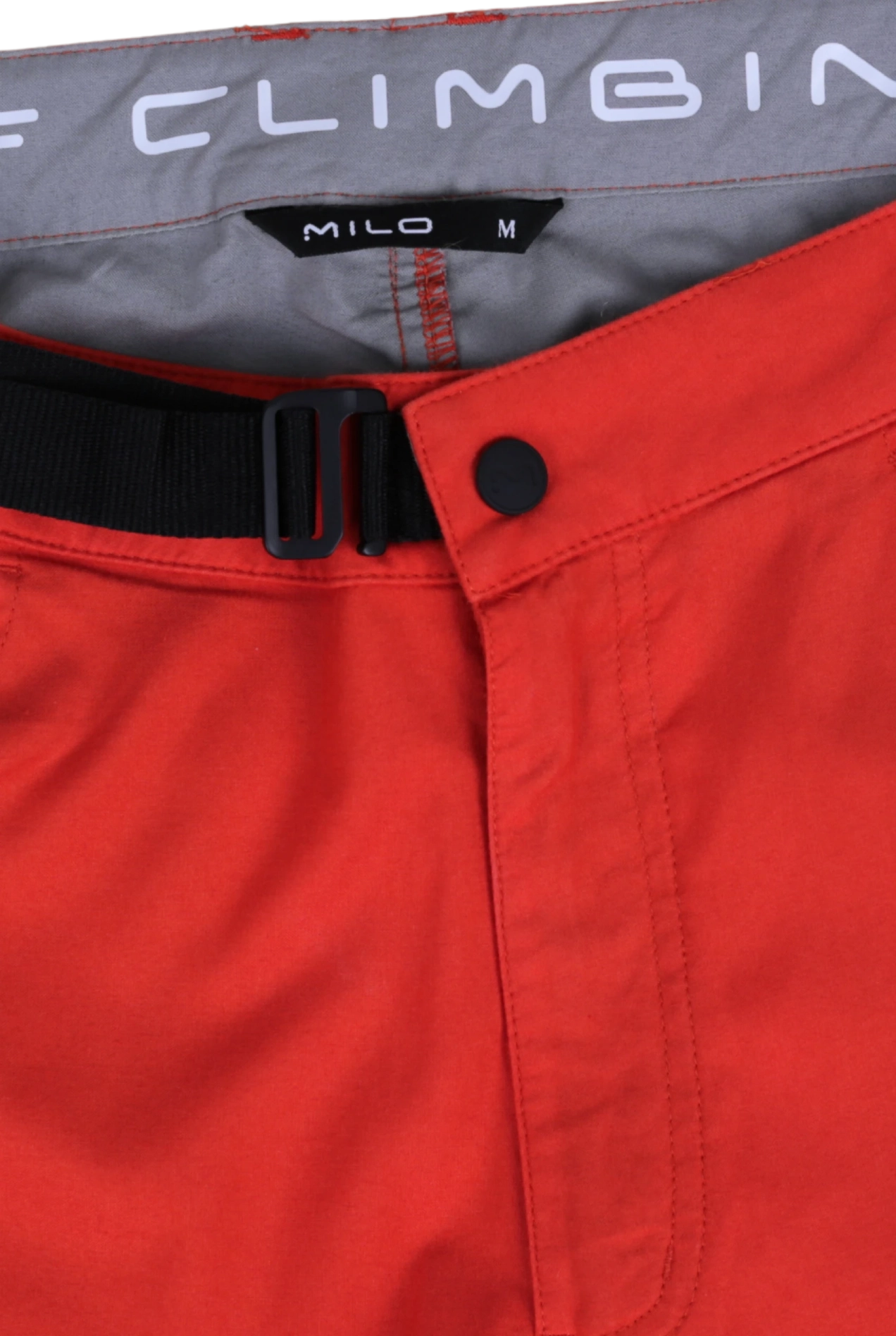 W pasie zastosowano wewnętrzny system regulacji z klamerką i haczykiem, który pozwala uzyskać płaski profil spodni pod uprzężą wspinaczkową. Dodatkowe szlufki umożliwiają opcjonalne użycie paska zewnętrznego.