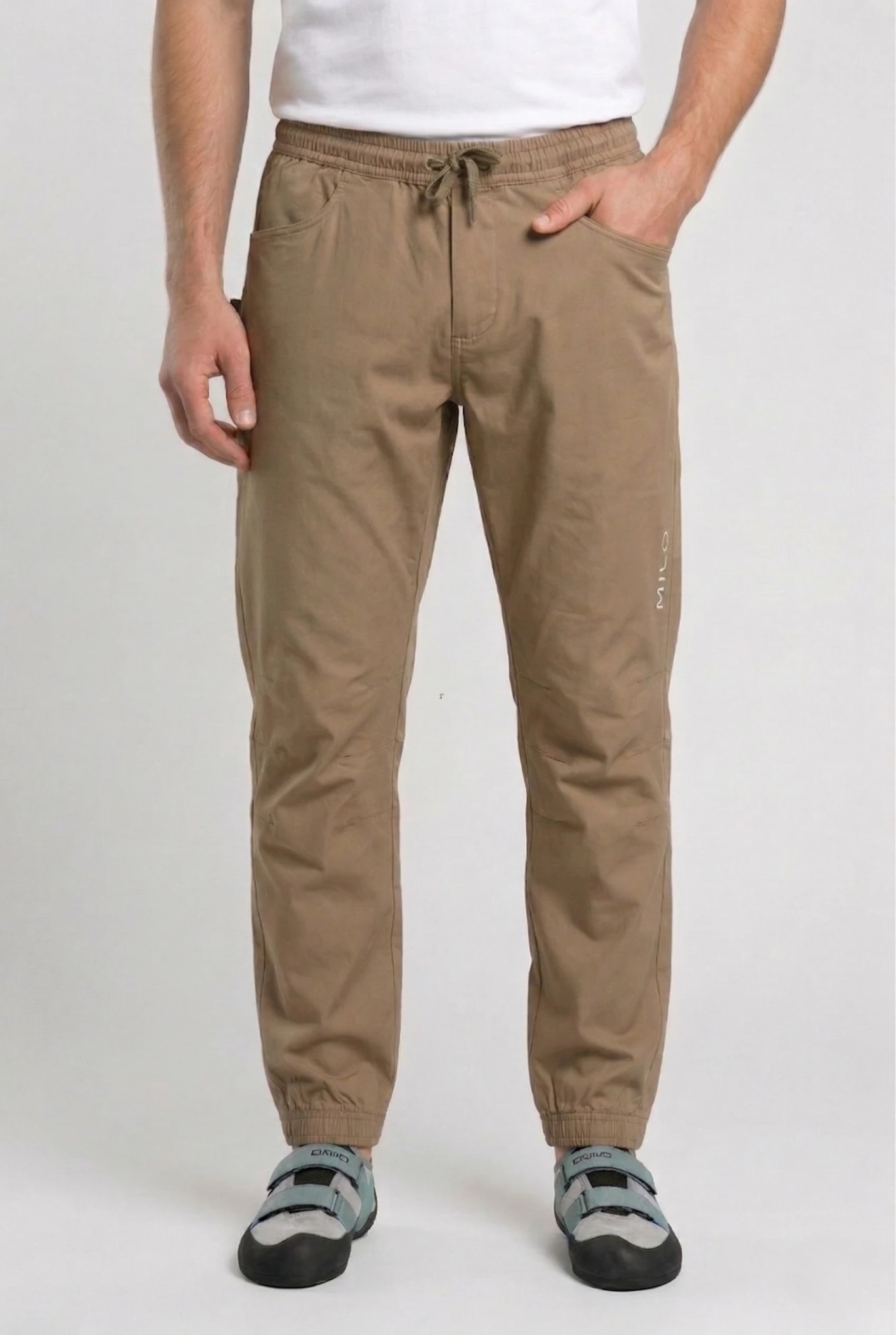 Tove to wytrzymałe spodnie wspinaczkowe o kroju jogger, zaprojektowane z myślą o intensywnym użytkowaniu zarówno na panelu, jak i w skałach.