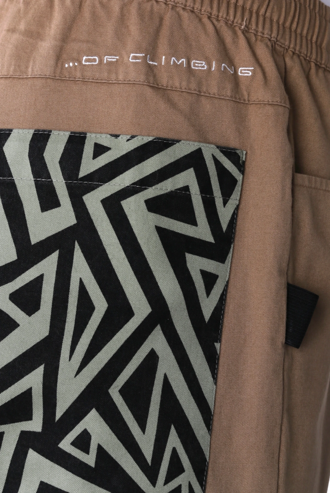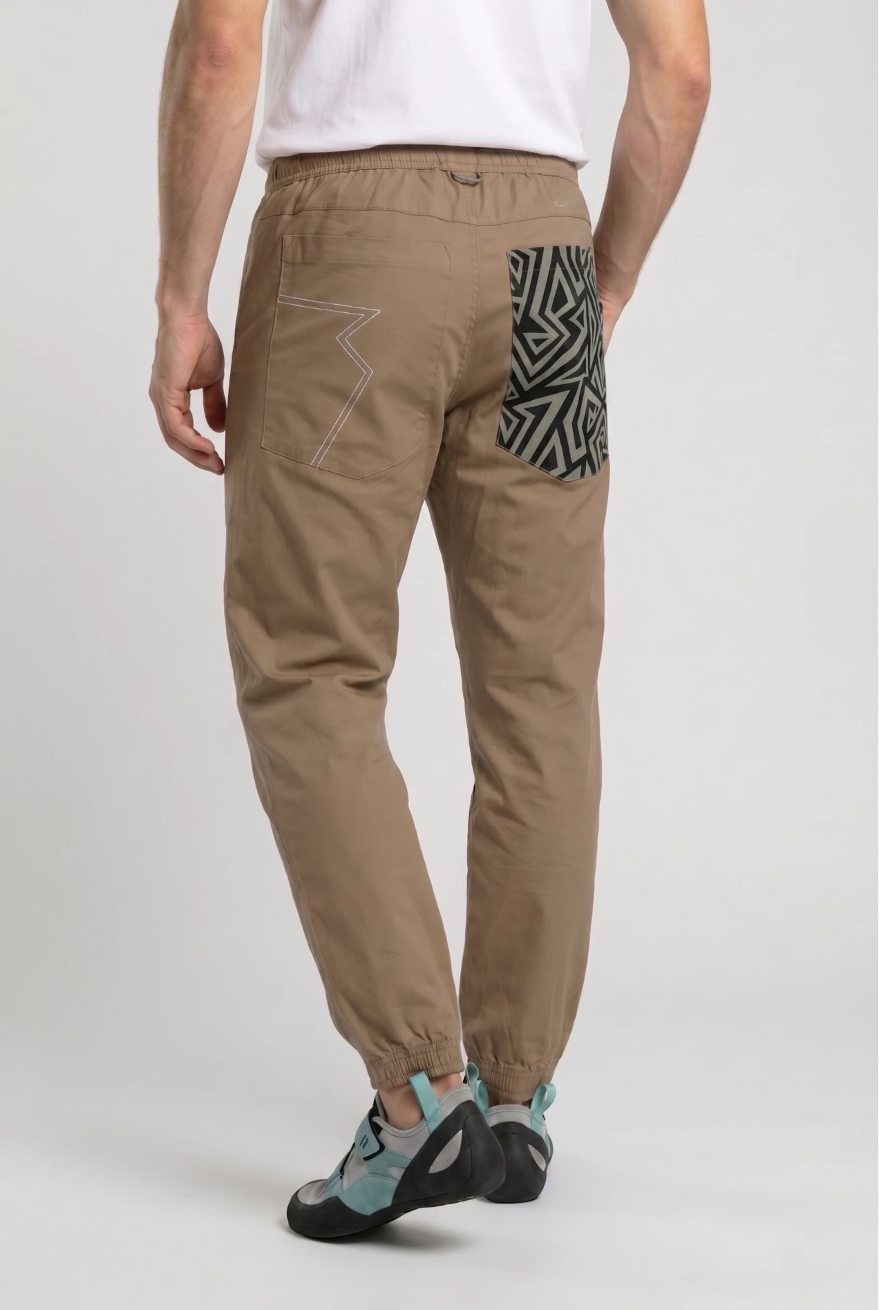 Nogawki zakończone elastycznymi ściągaczami utrzymują materiał na miejscu i pozwalają kontrolować pracę butów wspinaczkowych podczas precyzyjnego stopniowania.