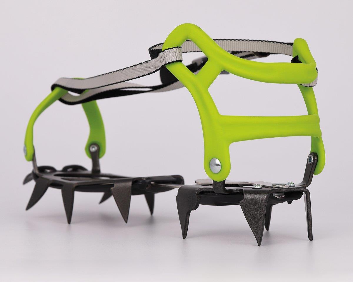 Wyjątkowy, elastyczny łącznik sprawia, że chodzenie w butach górskich z miękką podeszwą nie stanowi problemu. Raki współpracują z ruchami stopy nie utrudniając stawiania kolejnego kroku. Dodatkowa blaszka ułatwia zmniejszenie rozmiaru bez konieczności skracania łącznika. 12 stalowych zębów dba o przyczepność na lodzie i śniegu optymalnie rozkładając siłę nacisku. Zwiększa to zarówno bezpieczeństwo jak i żywotność raków, zwłaszcza w terenie mieszanym, gdzie śnieg przeplata się z kamieniami i skałą. Płaskie zęby atakujące dobrze osiadają w zmrożonym śniegu na stromych podejściach. Przesunięty ku przodowi profil kolejnych zębów dodatkowo stabilizuje pozycję.