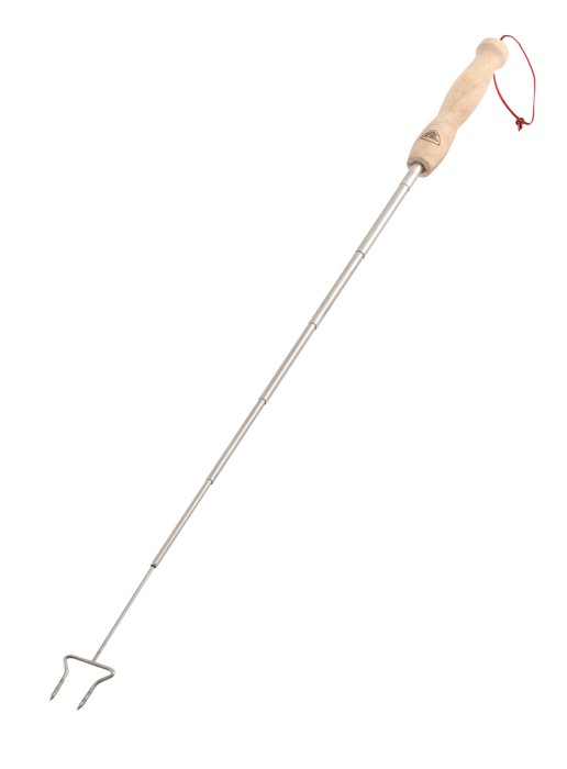Fire Fork to teleskopowa konstrukcja, którą wykonano z wytrzymałego stopu metalu. Model ma również drewnianą rączkę ułatwiającą pewny chwyt jego pewne złapanie. Produkt ma również pętlę na nadgarstek. Całość zajmuje niewiele miejsca po złożeniu, z kolei gdy, jest rozłożona, to pozwoli Ci upiec kiełbaski na ognisku.