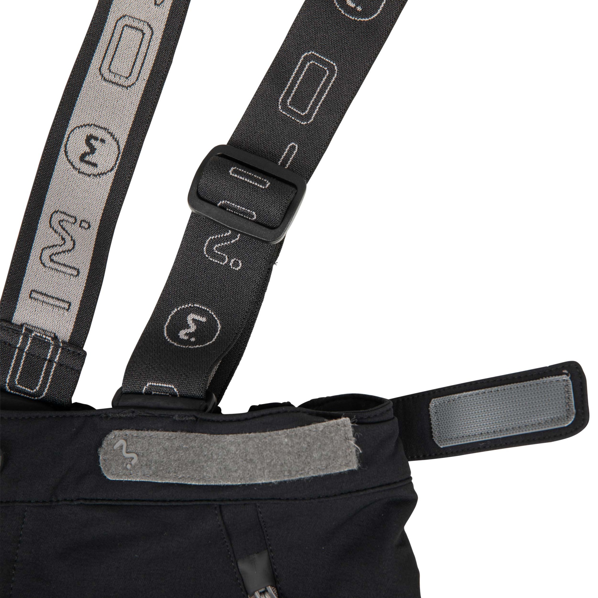 Zasuwana wentylacja boczna zapewnia lepszy komfort techniczny podczas intensywnej aktywności. Regulowane na suwak doły nogawek wyposażone w zintegrowane fartuchy przeciwśnieżne, wzmocnione w najważniejszych miejscach.