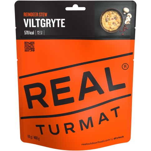 REAL Turmat Reindeer Stew to klasyczny smak kuchni norweskiej w lekkiej, outdoorowej formie. Ten liofilizowany posiłek łączy norweską reniferową wołowinę z ziemniakami, pieczarkami i borówką brusznicą. Połączenie składników tworzy zbalansowany gulasz o wyrazistym, nordyckim charakterze, a jednocześnie znajomym, domowym smaku.
