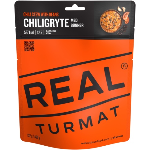 REAL Turmat Chili Stew to liofilizowany posiłek dla osób, które lubią wyraziste, lekko pikantne smaki. To wegańska wersja klasycznego chili con carne – bogata w fasolę, warzywa i aromatyczne przyprawy. Danie oferuje pełny, intensywny smak i sycącą konsystencję, idealną na chłodniejsze dni w terenie.